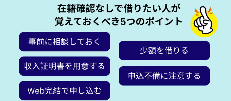 ただし、他社借入が多い場合や信用情報に不安がある場合は、少額でも通常通りの在籍確認が行われることもあるため注意しておきましょう。